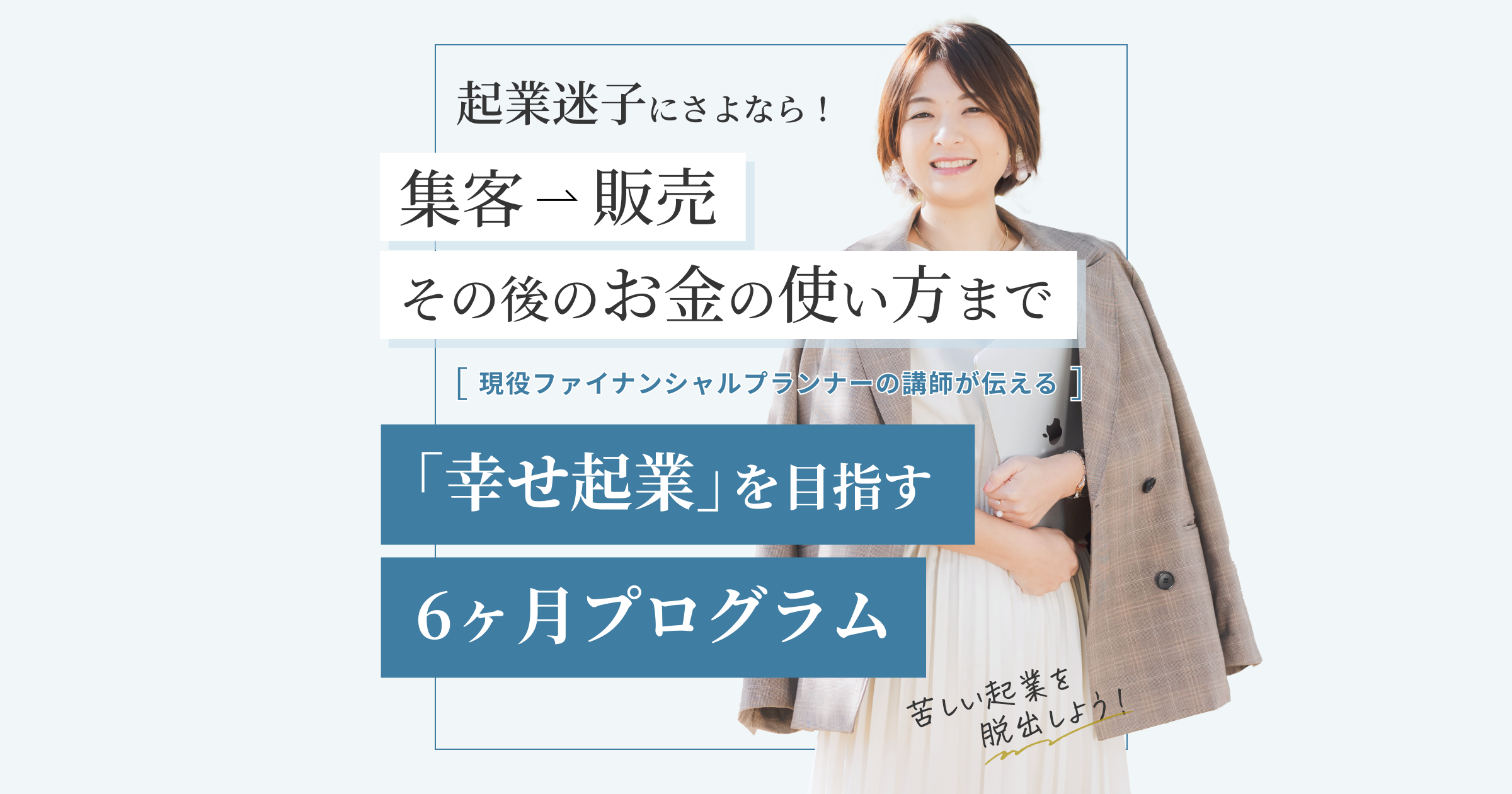 マイページ 会員情報の変更 パスワードリセットユーザー名またはメールアドレスユーザー名をお忘れですか? ここをクリック確認リンクを再送信しますか ? ここをクリック 会員限定コンテンツ 「幸せ起業」を目指す6ヶ月プログラム READ MOREREAD MORE